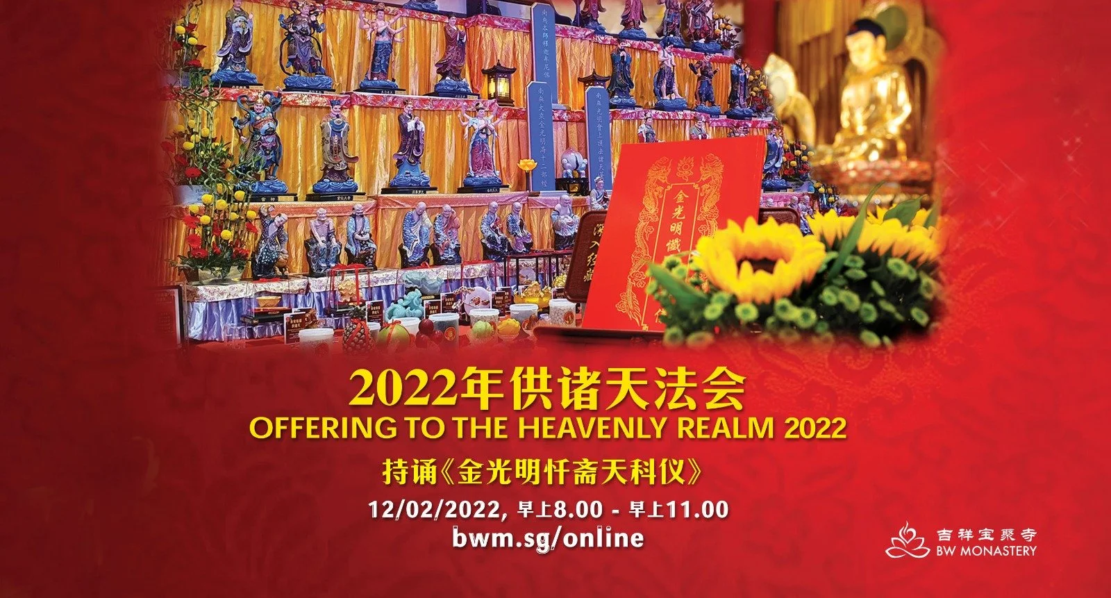The heaven realm is where the Buddhas and Bodhisattvas manifest too. Through offering to the heavens, paying respect and with repentance, through the Buddhas and Bodhisattvas’ strength of aspiration, we’ll be able to benefit all beings to be free from suffering and eliminate obstacles, for bliss and longevity to be obtained, and supplicate for the country to have prosperity, peace, and social stability for its citizens.