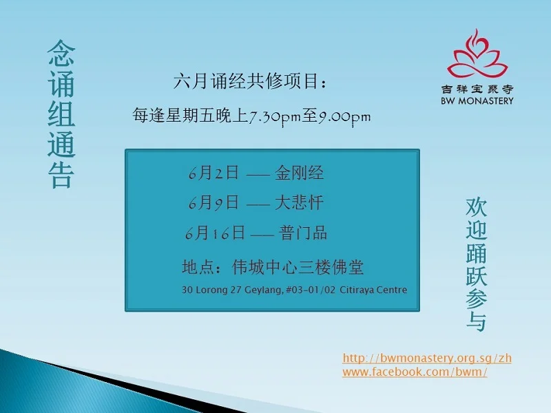 地点:伟城中心三楼佛堂 30 Lorong 27 Geylang Singapore 388164