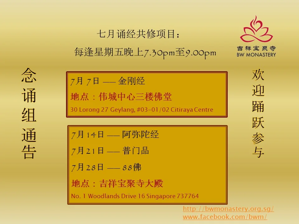 地点:伟城中心三楼佛堂 30 Lorong 27 Geylang Singapore 388164
