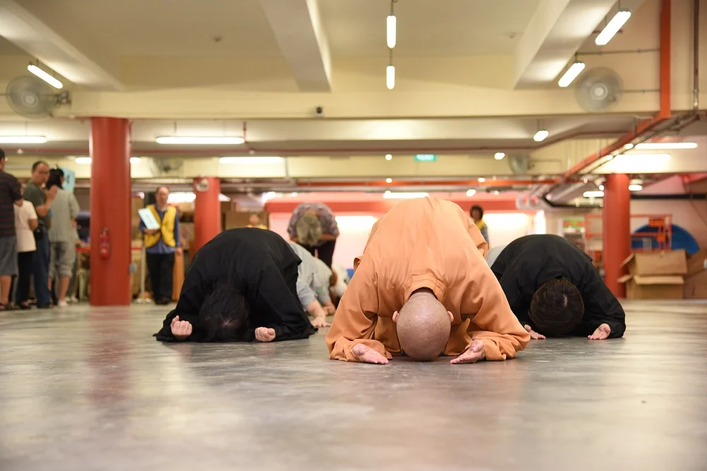 3-Steps-1-Bow is a manner of our showing respect to the Triple Gems. Every prayer bow is our way of paying sincere homage to the Buddha. Such practice is able to help purify our spirituality, cultivate humility and reduce obstacles to our spiritual growth. Through the process of bowing and praying, we pay repentance to our past mistakes and sins, and motivate ourselves towards greater spiritual enhancement.
