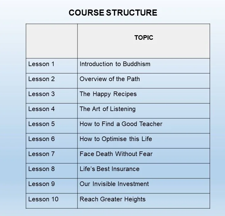 Builds the foundation of basic Dharma concepts, and cultivates a positive learning attitude with a joyful heart.