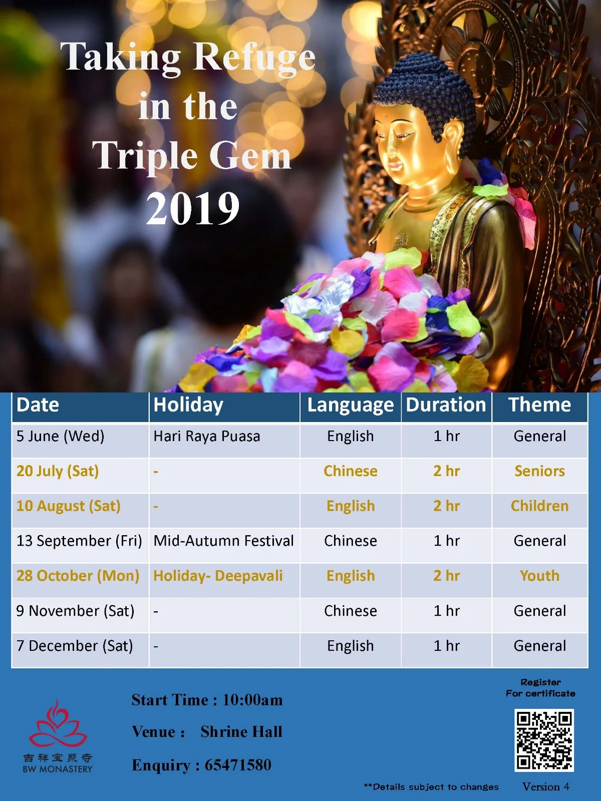 芽笼区 伟城中心 - 佛法简介 10堂课 (华语)