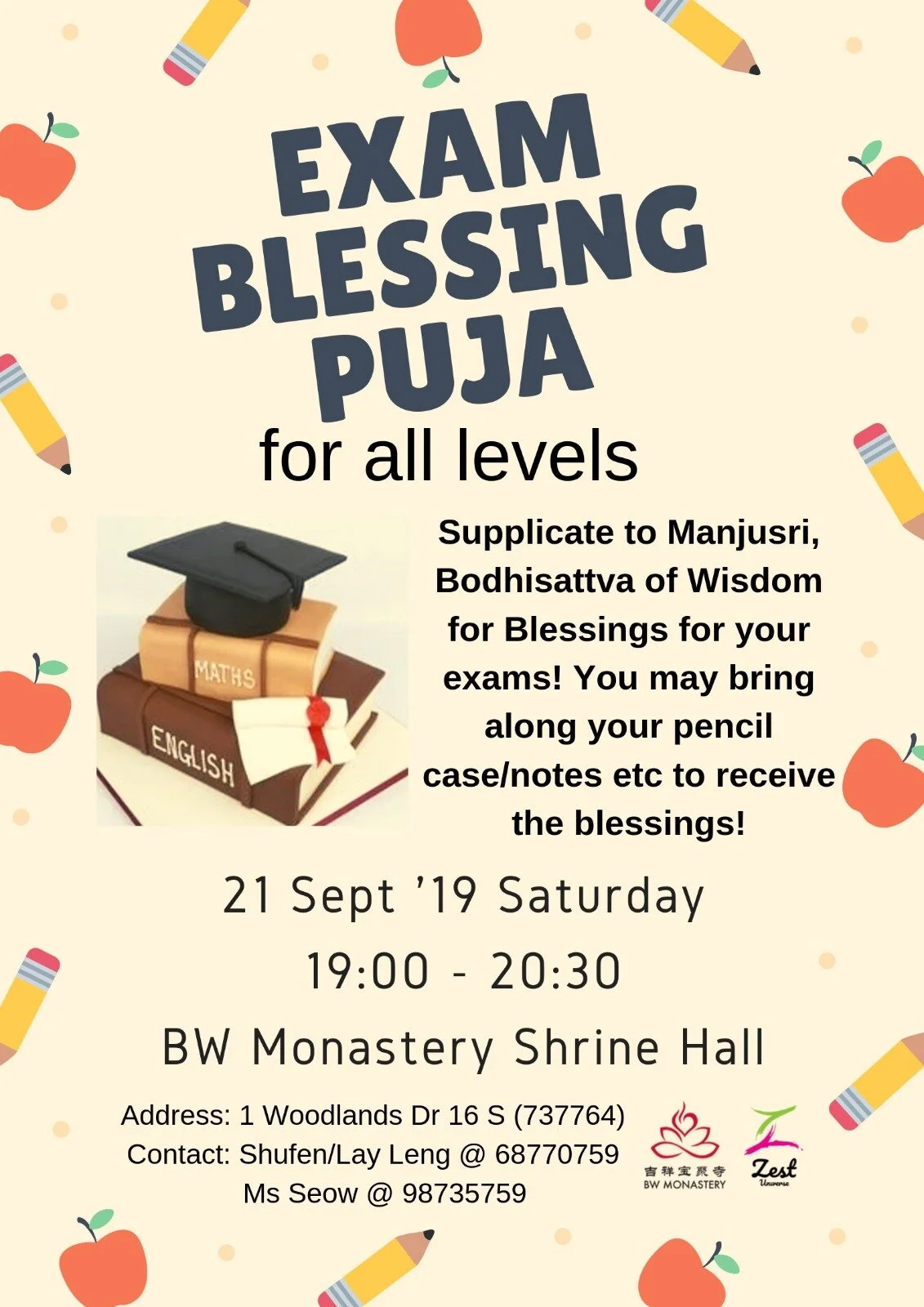 Do you find yourself stressing out over the same questions? Fear not, because BW Monastery is holding an Exam Blessing Puja for all students!