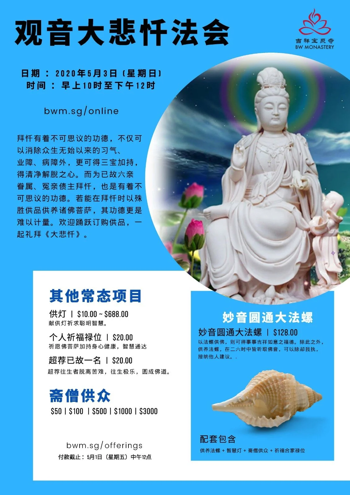 值此2019 冠状病毒疫情令人堪忧之际,将改为线上法会