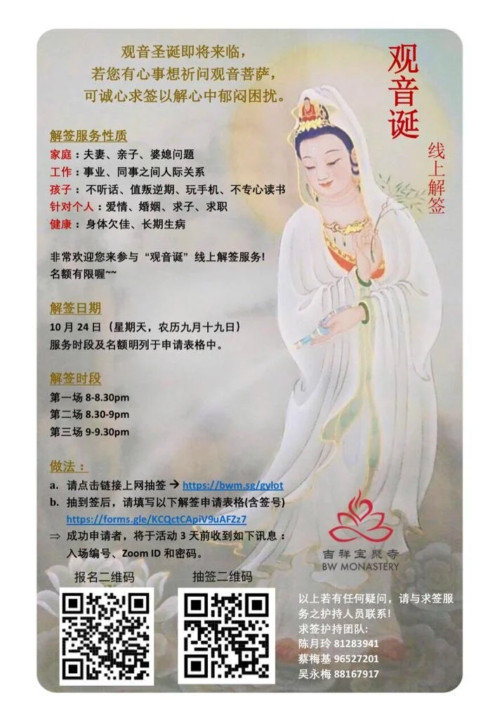 观音圣诞即将来临,若您有心事想祈问观音菩萨,可诚心求签以解心中郁闷困扰。