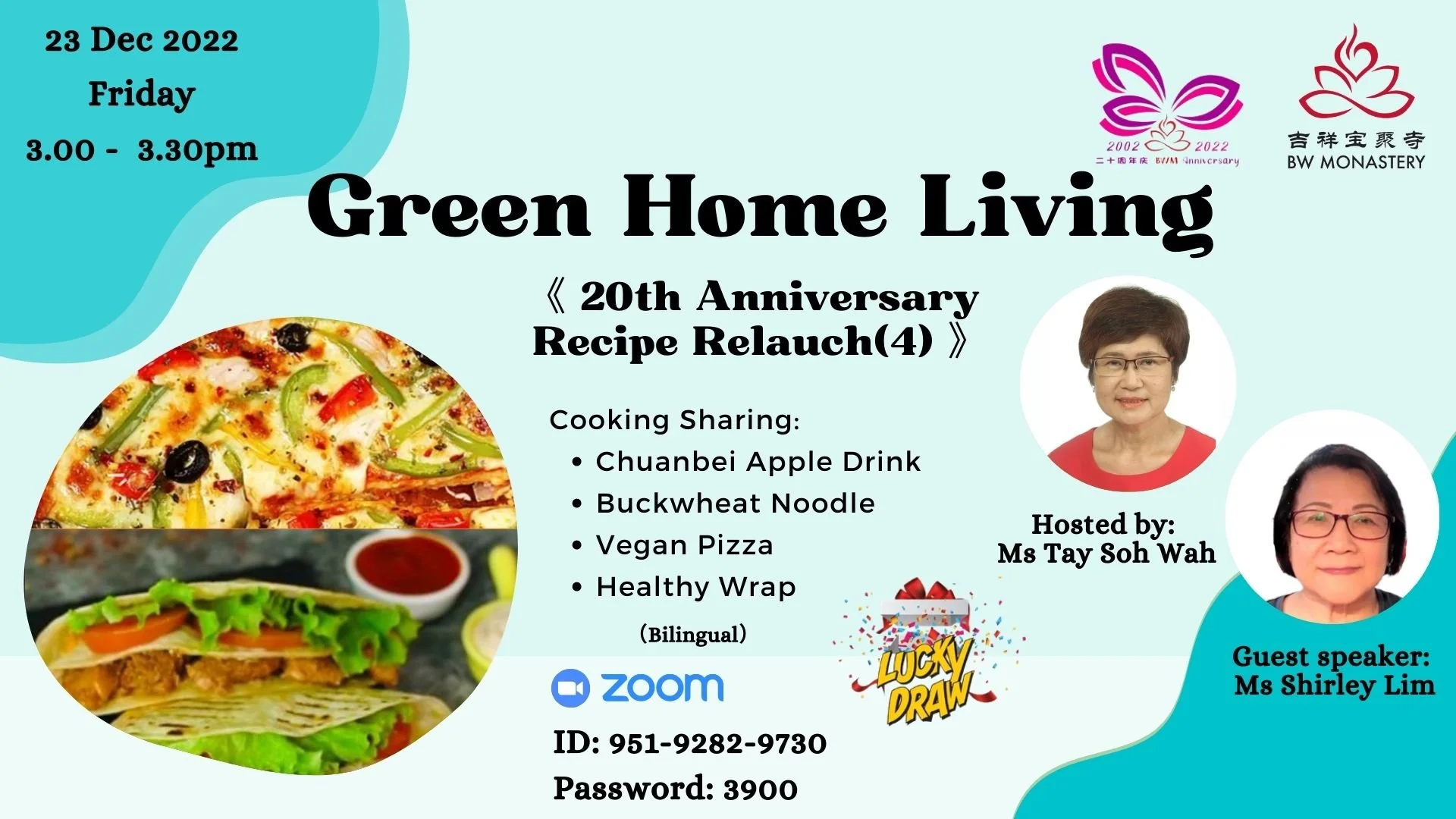 Every Friday afternoon, BW Monastery will touch on various topics such as Buddhism and Green Home Living. Each session will be a short 30 minutes session conducted by an experienced speaker over ZOOM. To pick up tips from these speakers, please tune in every Friday afternoon from 3pm to 3:30pm. See you there!
