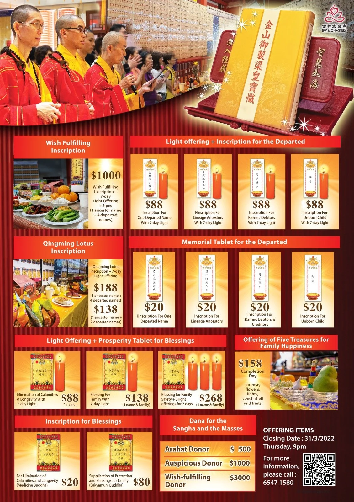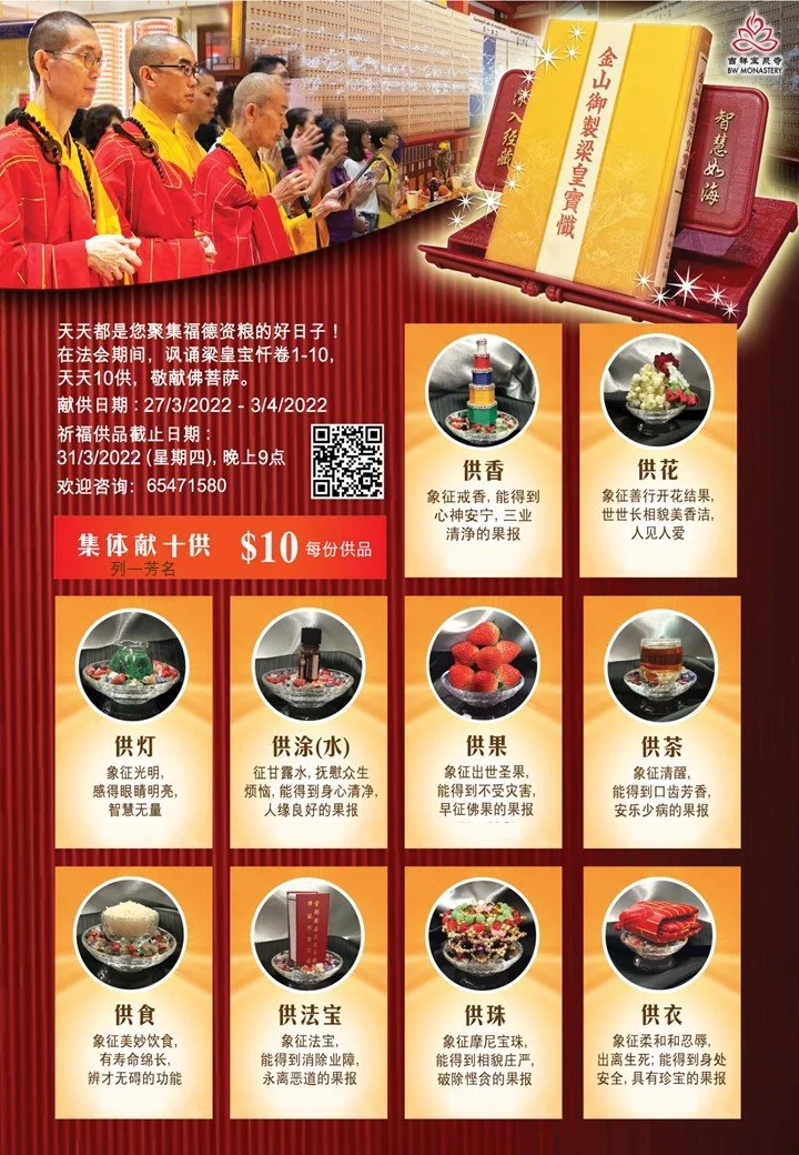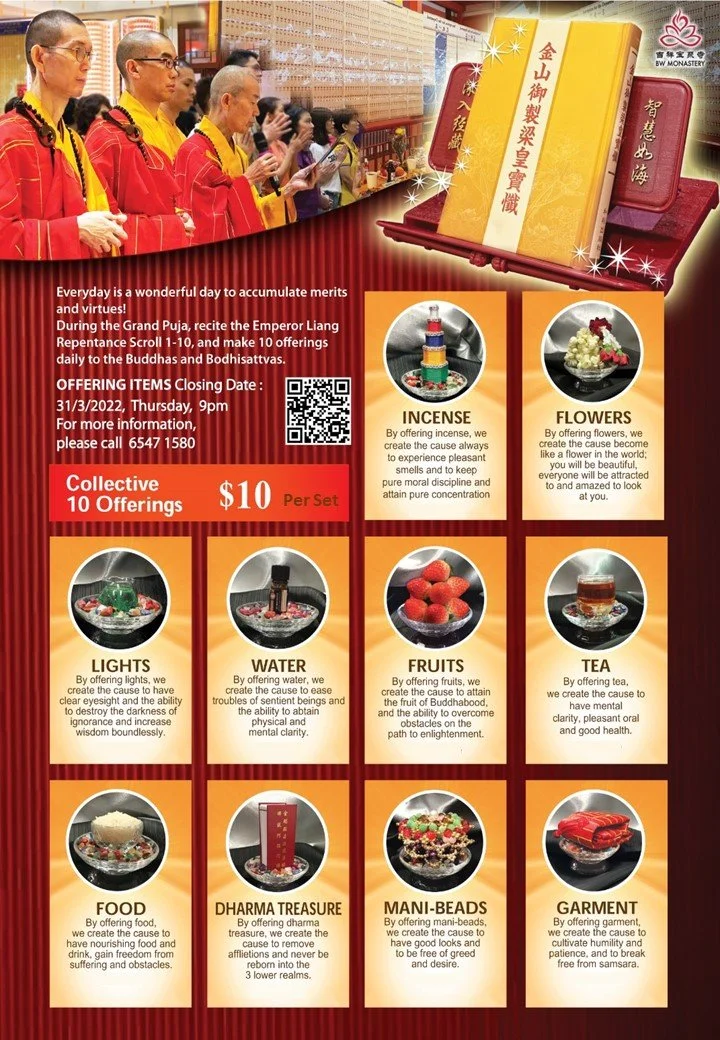 During the Qing Ming festival, we sincerely pay respect to our ancestors and recall their kindness. This allows us to practice and accumulate vast merits. BW Monastery will be holding "The Emperor Liang Jeweled Repentance" Grand Puja for the living and the departed, incorporating sessions to pay respect to the ancestors, supplicate and dedicate merits for the departed to be blessed by the Buddha, eliminate causes to be reborn in miserable realms, and be able to take rebirth in pure land.