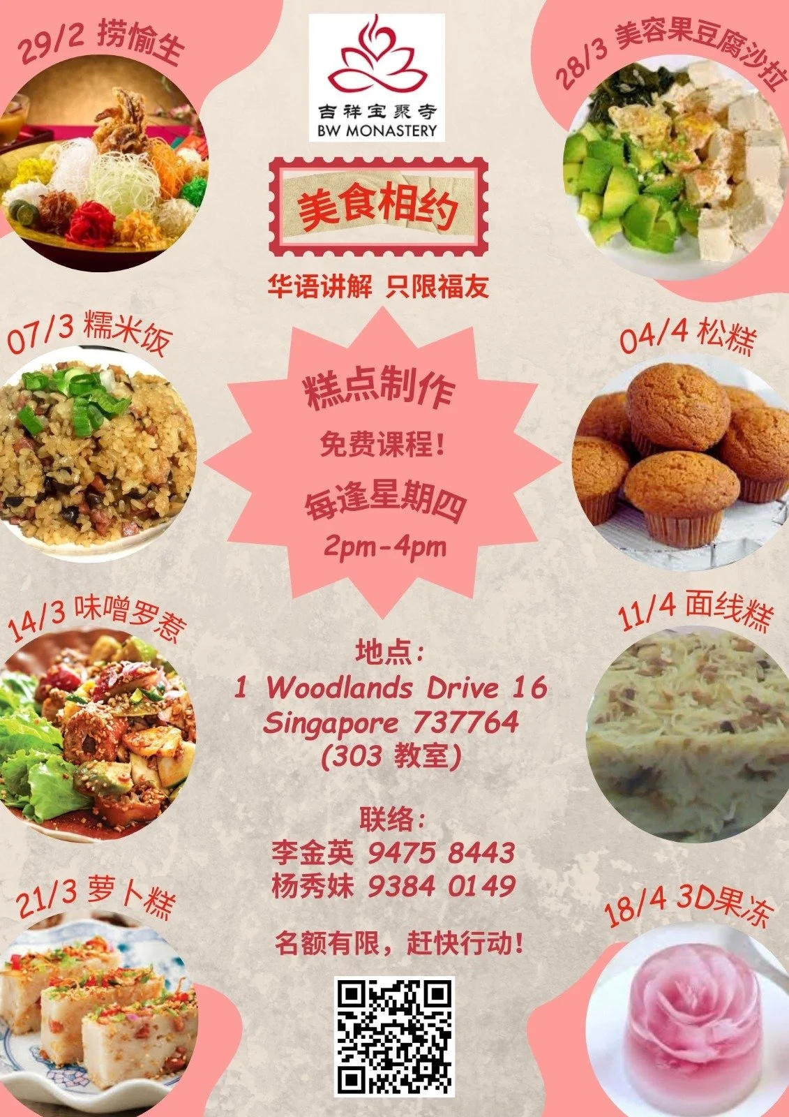与来自四面八方的朋友相聚一起,学习香味四溢,超好吃的美食糕点! 敬爱的朋友们,快报名!我们等你来!