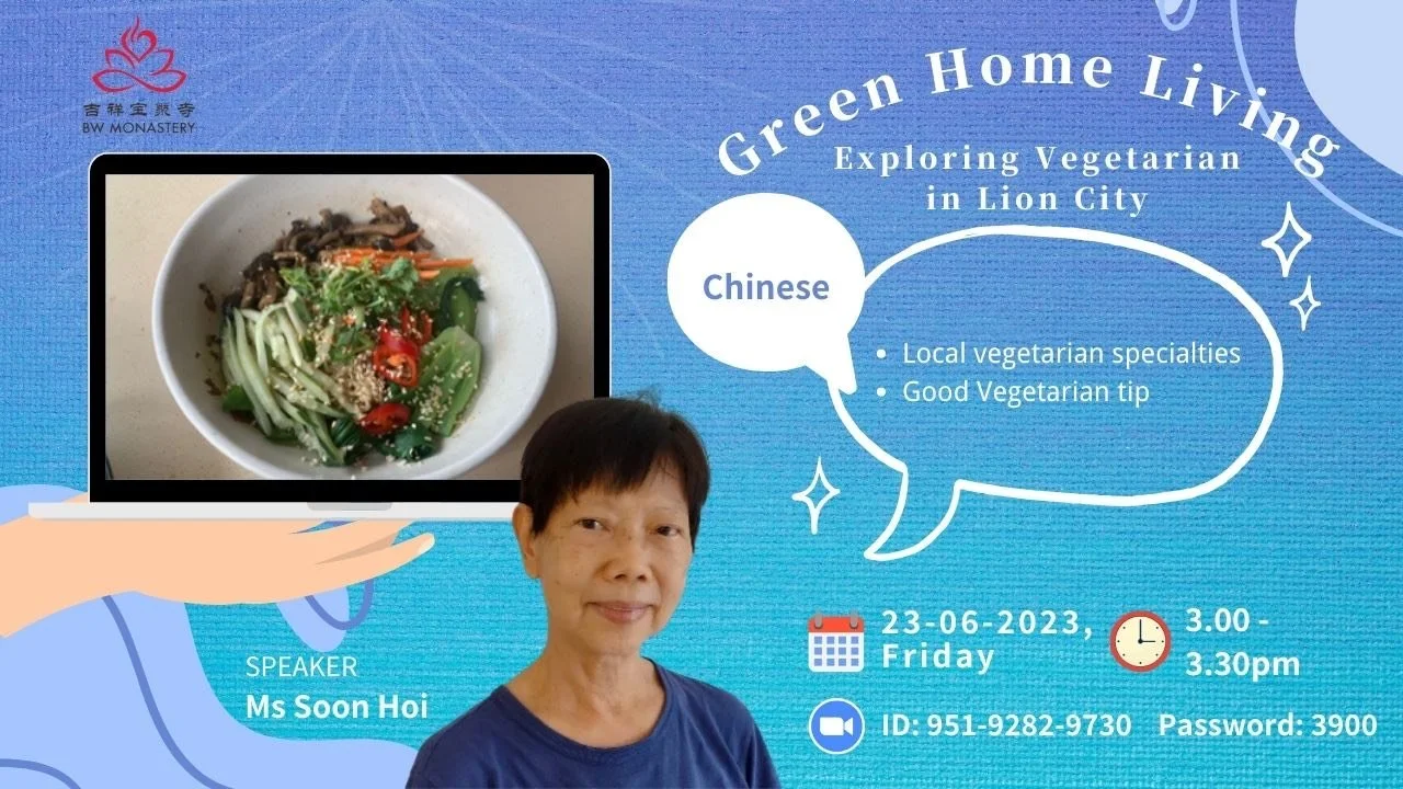 Every Friday afternoon, BW Monastery will touch on various topics such as Buddhism and Green Home Living. Each session will be a short 30 minutes session conducted by an experienced speaker over ZOOM. To pick up tips from these speakers, please tune in every Friday afternoon from 3pm to 3:30pm. See you there!