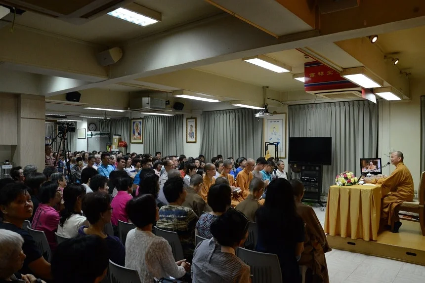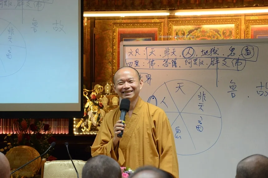 净远法师12月20日晚上在伟城中心三楼的大殿以“创造生命的财富——善用暇满人身”为题向四众弟子和有缘公众开示时,善巧运用了“有奖问答”和画图譬喻等诸多方便法,深入浅出、言简意赅地说明了在六道辗转轮回的芸芸众生得到人身是何其地不容易,更何况是具足十圆满、八无暇的珍宝人身。
