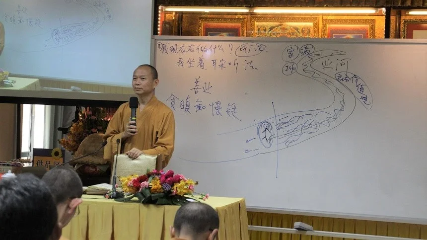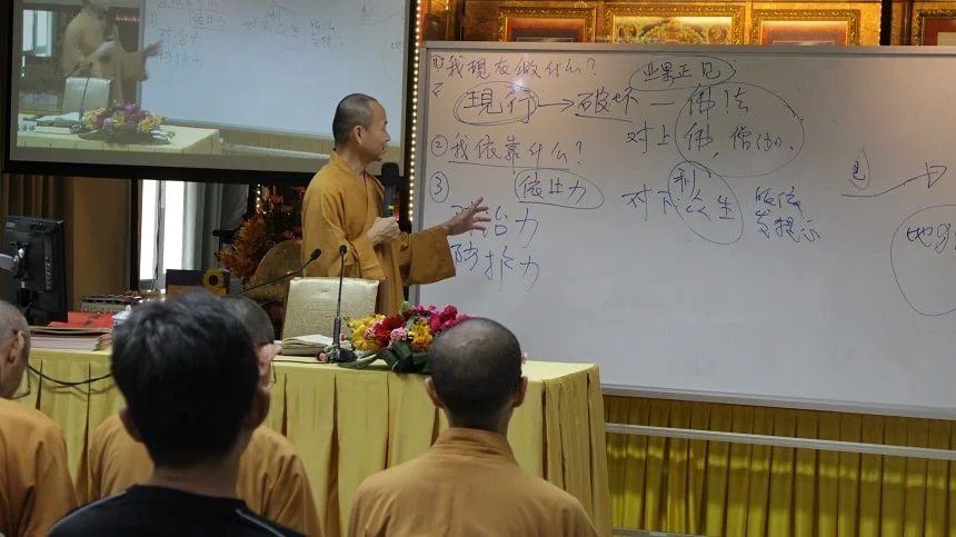 净远法师于12月24日下午为弟子众开示的第四堂提升课,与前三堂课程是次第井然、前后连贯的。从第一堂谈善用暇满人身,进而探讨掌握世间正知见,由浅入深揭示业果正见,接续第四堂众所期待的内容──自己来改运。前两堂课是“算命”,这堂课则教我们“改命”。这么吸引人的主题使得吉祥寺伟城中心一位难求,若加上马印等各个教室连线,听法的人数高达1244名。