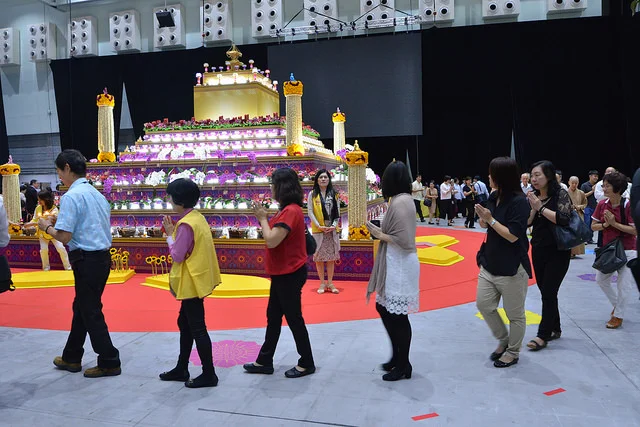 Held at Mega Box Event Hall in Jurong this year, the Ceremony took on the theme of "Gratitude to our Teachers and the Triple Gems, Establish Teachings, Benefit All Beings". From as early as eight-plus in the morning, members who were dressed to their best, started milling into the venue hall. Fresh flowers lined the altar where three huge Buddha portraits hung stately. Master’s Relic Stupa, Shrine and Sutras that will eventually reside in the BW Monastery’s new temple in Woodlands were also majestically set up for members to pray, prostrate, circumbulate and make offerings. Members who came early made light and flower offerings, as well as contribute monetary offerings to the Monastery or purchased items from Yes Natural and Blue Sky.