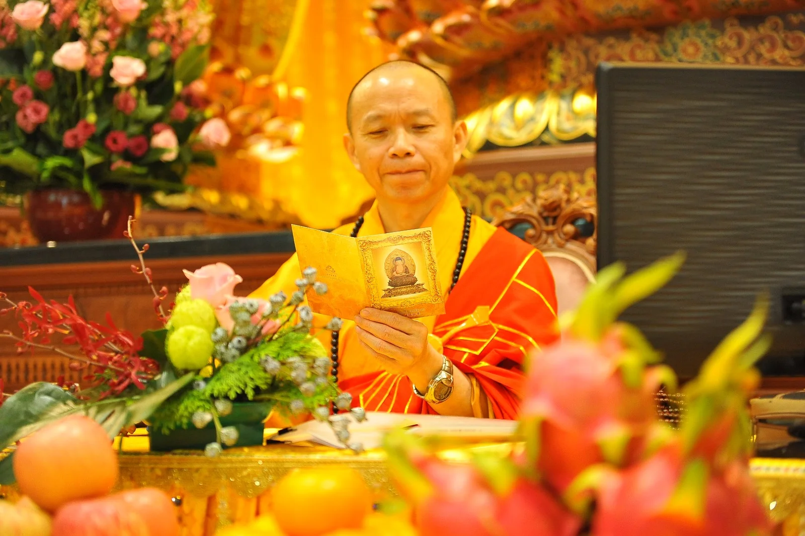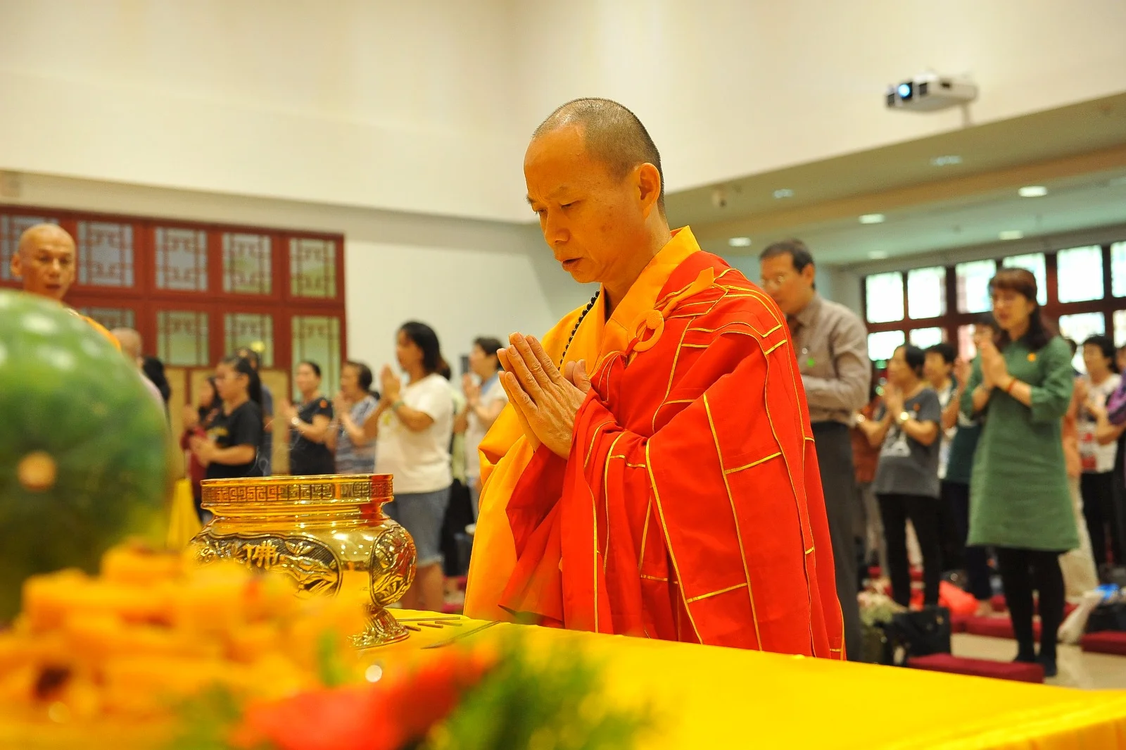 法会现场一片祥和,每个人的都充满了喜悦。上供法会结束后,所有弟子享用简单的素食后欢欢喜喜地离开美丽的寺院。