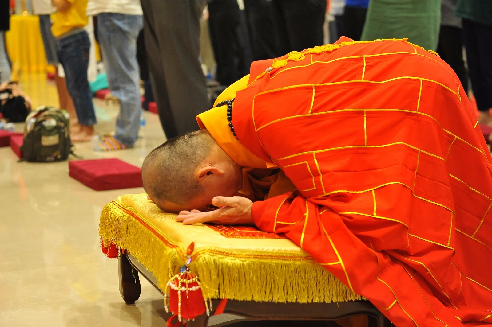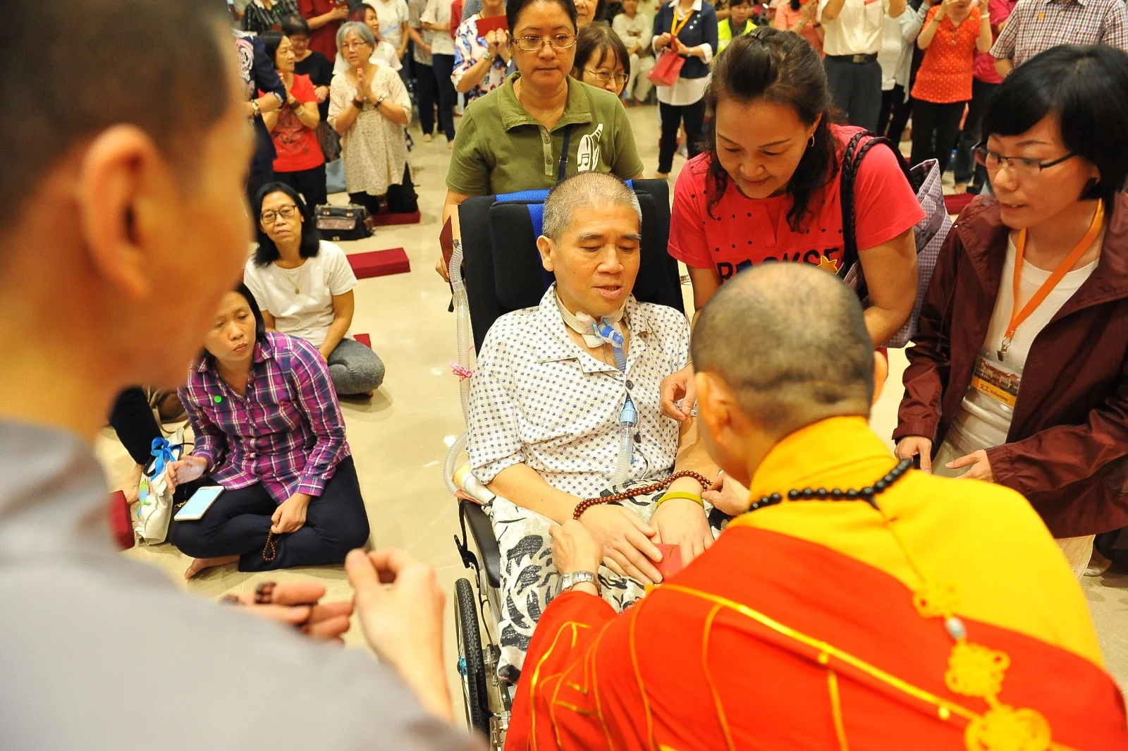 法师亲自分发加持物