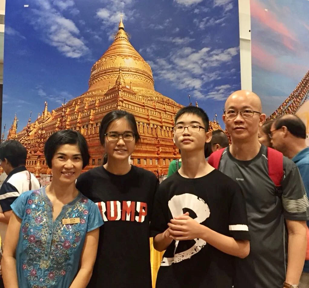 小寿星龙仕存 (14 岁)手捧着自制的折纸莲花说他很开心可以跟爸爸妈妈一起来礼佛绕塔!