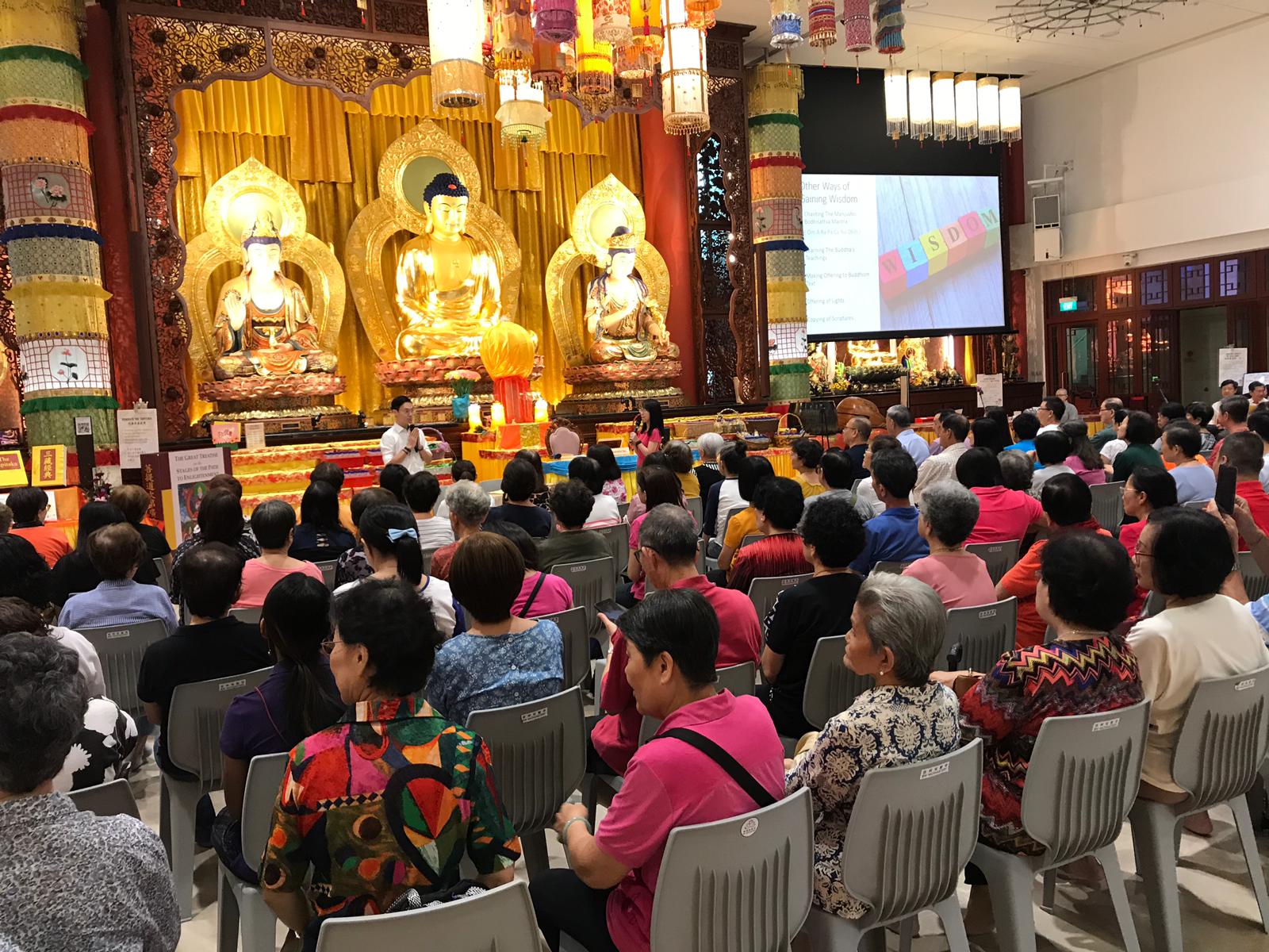 在这快乐的一小时,大家在法师的带领下供灯礼佛,并回向新的一年里,能种下智慧之因。