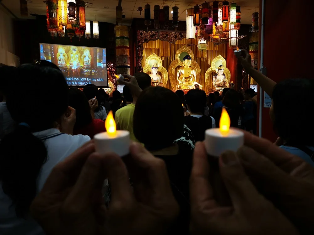 The Ceremony of Lights started with Venerable Ben Si sharing that Buddha represents Compassion and Wisdom, in which he is accompanied by the Bodhisattva Avalokiteshvara who embodies Compassion and Manjushri who is the Bodhisattva of Wisdom.