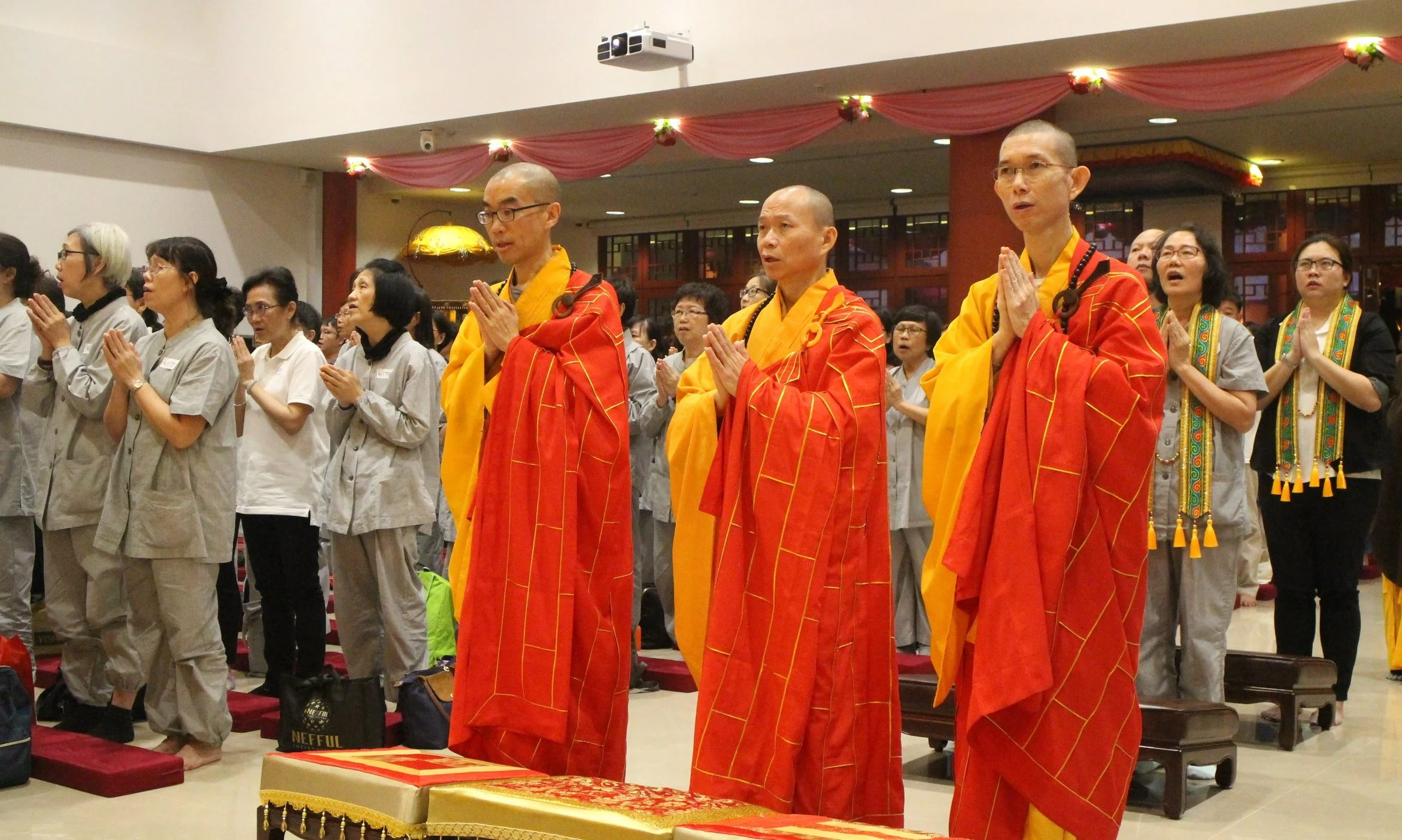 3月7日,星期三,7.45pm - 9.15pm,有《八十八佛忏法会》,由净远大和尚主法,拜忏人数约490人。