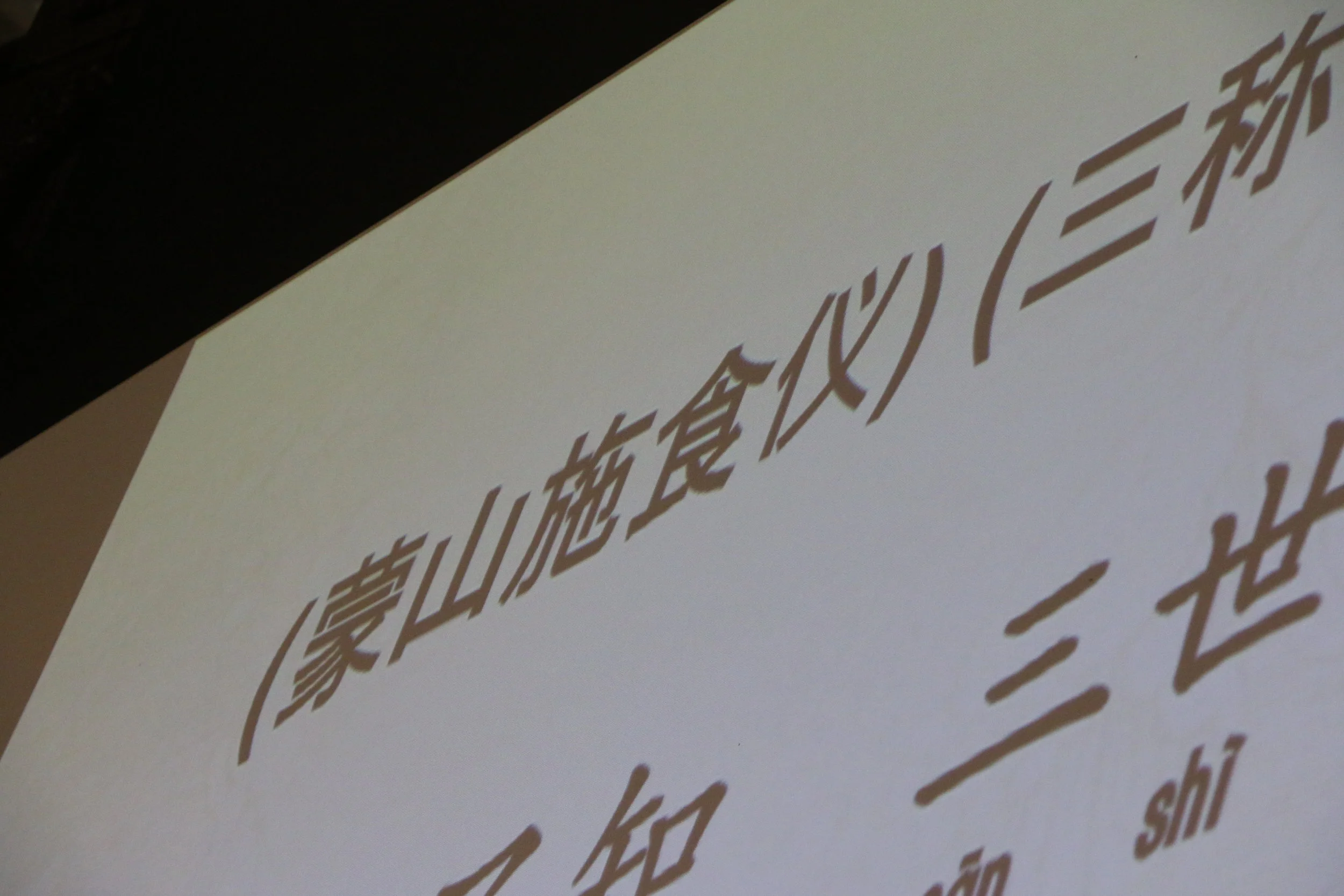 三卷的水忏后是蒙山施食仪式。精致丰盛的祭祀品设置供坛,在法师的带领下为一切如母有情众生施食普济,让恶趣众生受加持脱离三恶道苦。