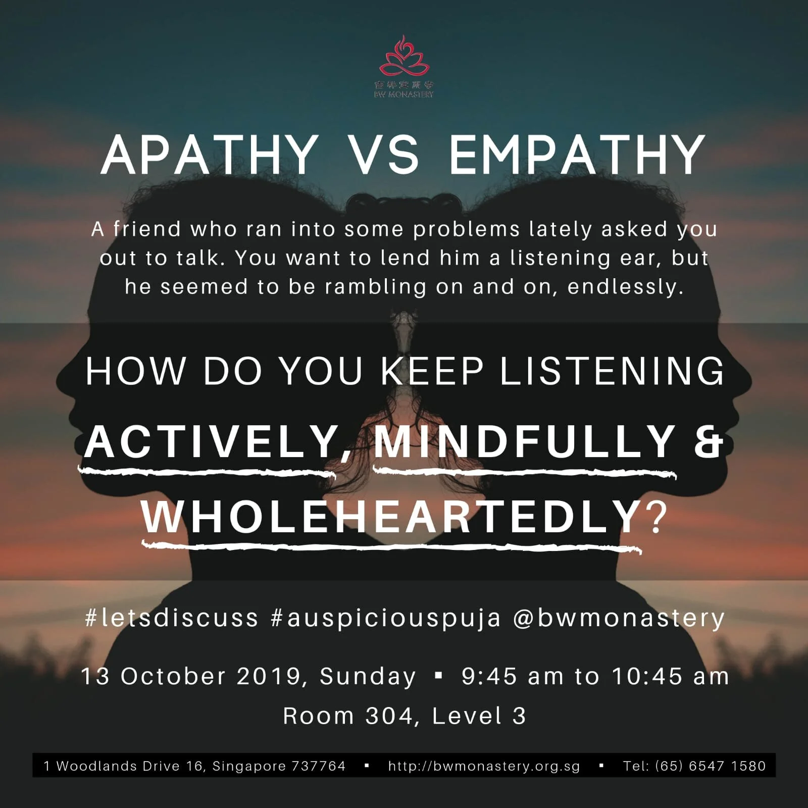 For the upcoming Sunday, we will be discussing 'Apathy Vs Empathy' - When someone needs a listening ear, how do we keep listening actively, mindfully and wholeheartedly? Join us this Sunday at the Monastery to find out! Stay Connected with us!