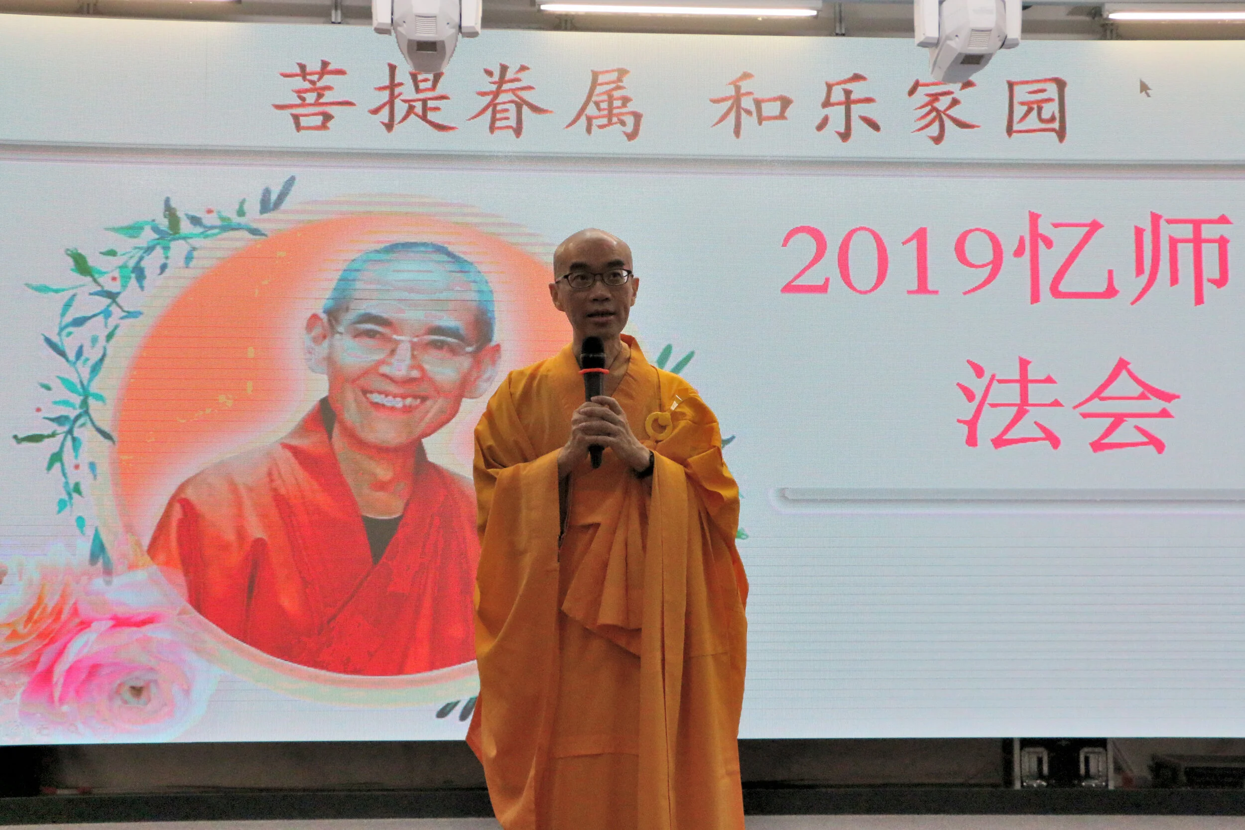 法会上,通过听法师开示、唱赞颂、看影片,忆念日常老和尚是如何引领凡夫的你我,看到生命更高远的目标,进而在生活中勇于实践佛法。