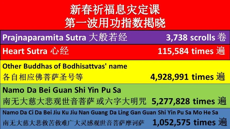 1. Recite Heart Sutra : 心经: 115,584 times 遍