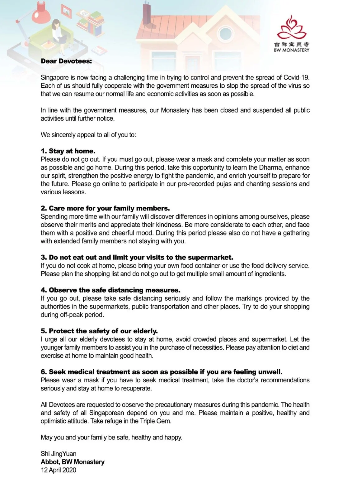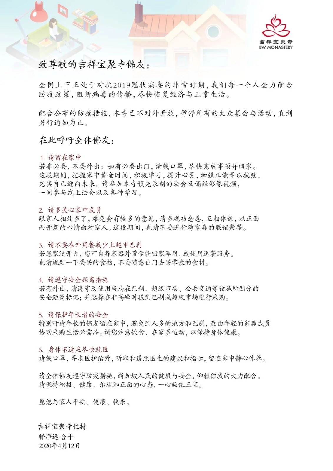 Gentle Reminder from Our Abbot of BW Monastery 吉祥宝聚寺住持温馨叮咛 news 12 Apr Written By Low Yam Tng 中文 Eng 吉祥宝聚寺住持温馨叮咛 eng中文 Low Yam Tng