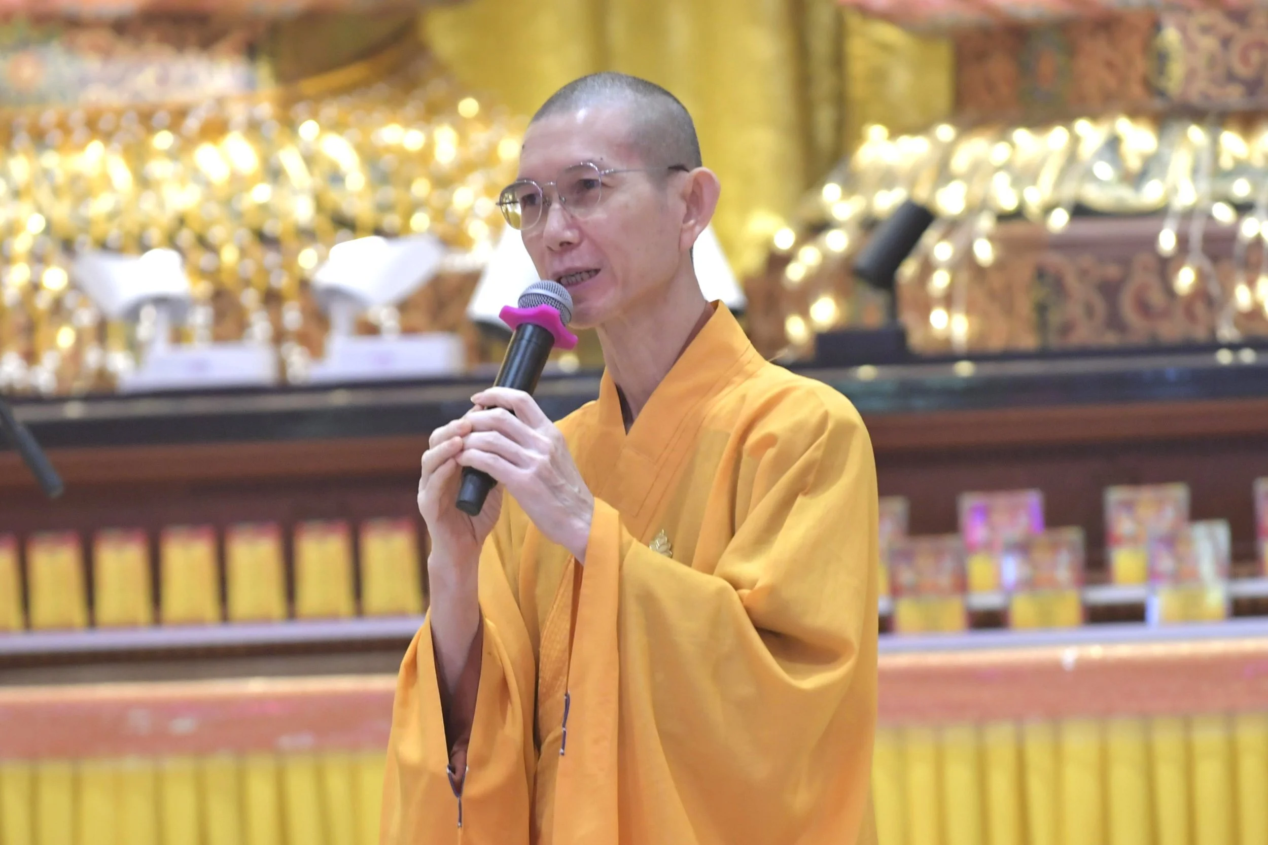 圆满法师更是用心鼓励引导护持团队及表演者们的各组如何欢喜供养师长佛菩萨,让来听与看的佛友观众欢喜,与师父老师,学广论种下殊胜善种子! 法师也鼓励在场者参与9月或12月的《赞胜一切 颂出正能量》! 在最后,还带领大家做回向。祈愿善知识法体康泰长久住世常转法轮! 速速到亲临吉祥寺及东南亚国家为弟子们开示。