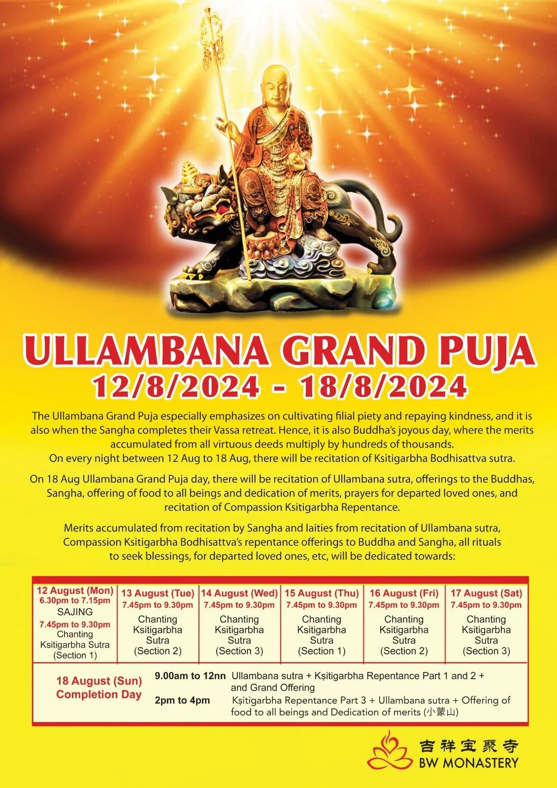 This year, BW Monastery Sangha will be reciting Ksitigarbha Bodhisattva sutra every night from 12 August to 17 August, and on 18 August (Completion day) devoutly practice Ksitigarbha Bodhisattva sutra.