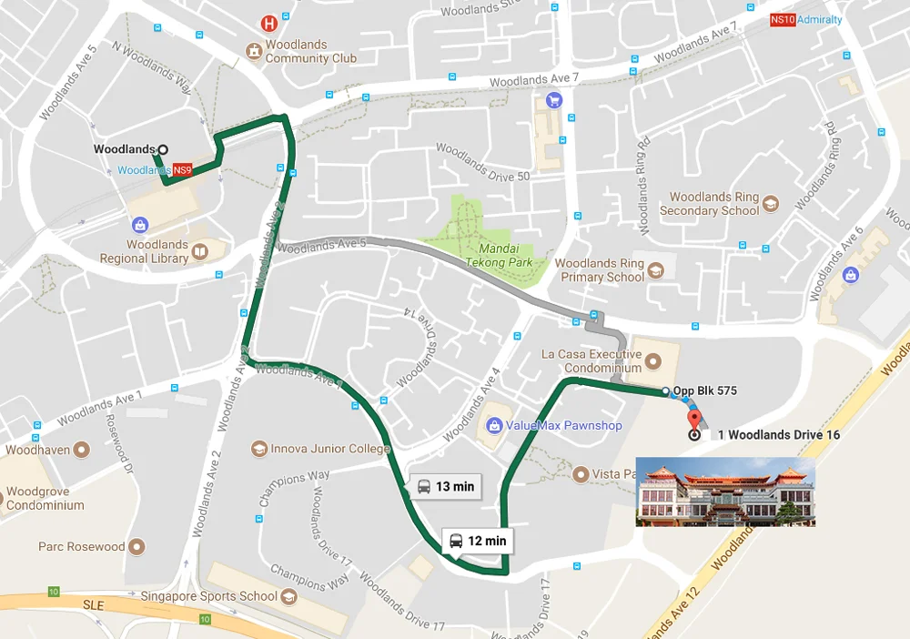 a. From Woodlands South MRT (4min bus, 2min walk)