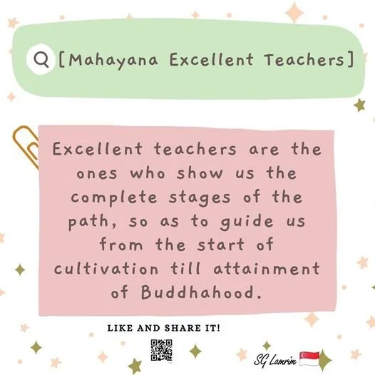 Excellent teachers are the ones who show us the complete stages of the path, so as to guide us from the start of cultivation till attainment of Buddhahood.